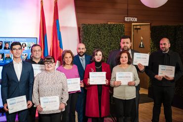 HOLLYWOOD—Hye Hopes Inc. visited Rose and Alex Pilibos Armenian School to show its appreciation to teacher Narineh Kouzouian and students, who have helped with synchronized instruction to students in the Syunik province of Armenia since January 2021. The Pilibos Scholars have collaborated with students from Kapan, Verishen, Meghri, Sisian and Agarak in the Hye Hopes online leadership course led by Kouzouian.